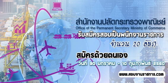 สำนักงานปลัดกระทรวงพาณิชย์ เปิดรับสมัครสอบเป็นพนักงานราชการ จำนวน 20 อัตรา สมัครด้วยตนเอง ตั้งแต่วันที่ 30 มกราคม - 10 กุมภาพันธ์ 2560