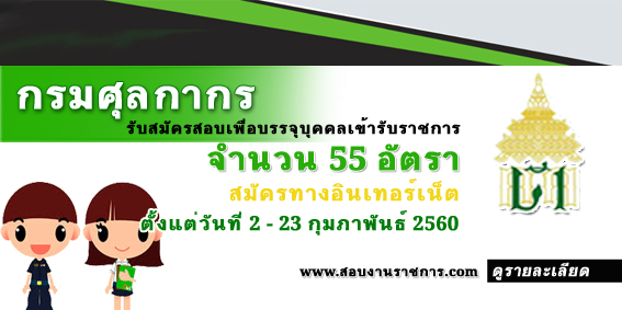 เปิดรับสมัครสอบเพื่อบรรจุบุคคลเข้ารับราชการ จำนวน 55 อัตรา รับสมัครทางอินเทอร์เน็ต ตั้งแต่วันที่ 2 - 23 กุมภาพันธ์ 2560