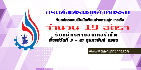 กรมส่งเสริมอุตสาหกรรม เปิดรับสมัครสอบเป็นพนักงานราชการ จำนวน 19 อัตรา รับสมัครทางอินเทอร์เน็ต ตั้งแต่วันที่ 7 - 21 กุมภาพันธ์ 2560