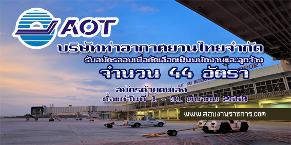บริษัท ท่าอากาศยานไทย จำกัด เปิดรับสมัครสอบเพื่อคัดเลือกเป็นพนักงานและลูกจ้าง จำนวน 44 อัตรา รับสมัครด้วยตนเอง ตั้งแต่วันที่ 1 - 31 มีนาคม 2560