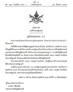 ประกาศ ณ วันที่ 24 สิงหาคม พุทธศักราช 2557 เป็นปีที่ 69 ในรัชกาลปัจจุบัน